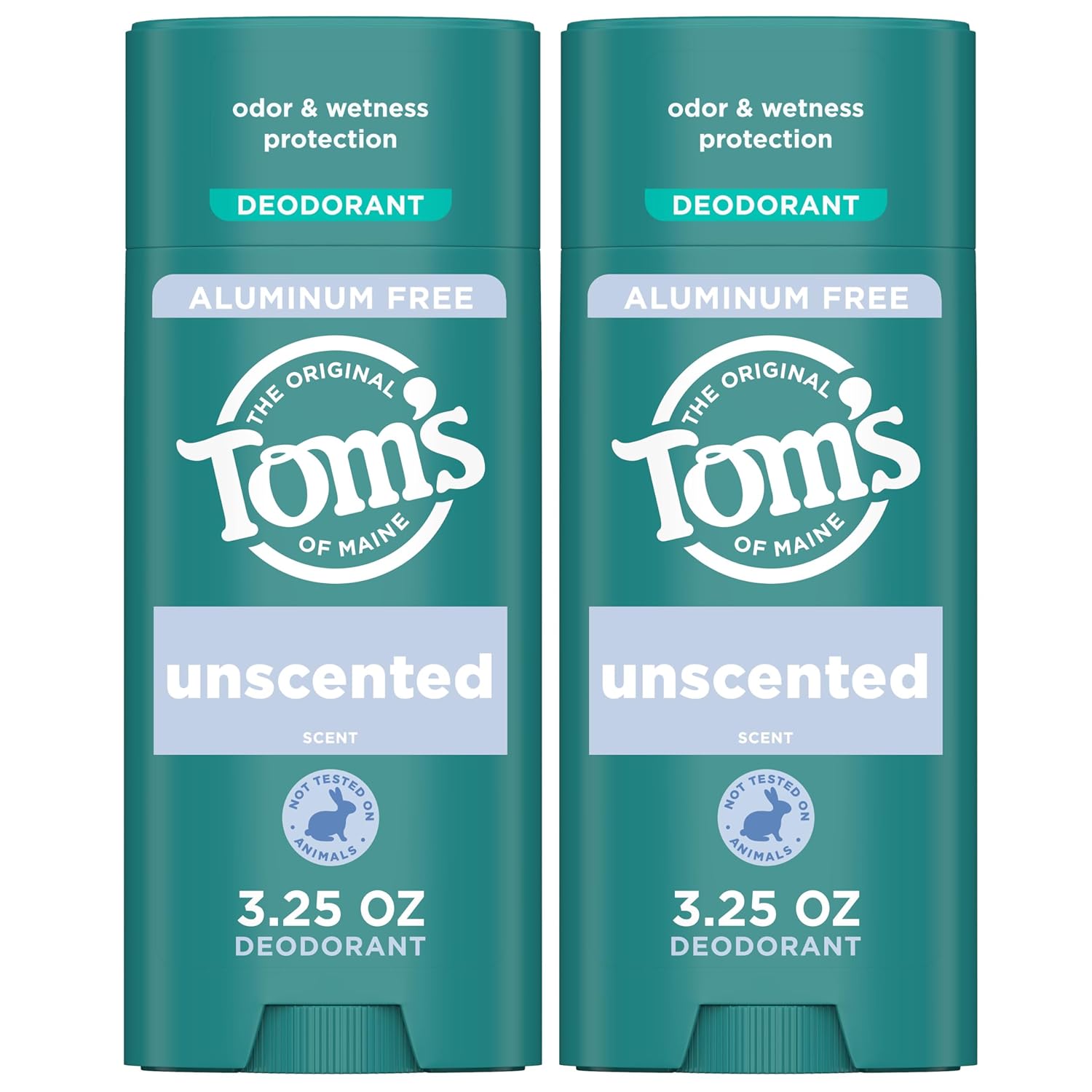 Two 3.25 oz Tom's of Maine unscented natural underarm deodorant for men and women, it's for everyone